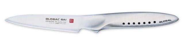 Global Sai är en vidareutveckling av Globals klassiska knivserie. I stället för ett lager stål är Sai-knivarna uppbyggda av tre lager stål. Kärnan är gjord av Globals egen stålblandning Cromova 18, medan de två yttre lagren och handtaget är gjorda av ett mjukare stål. Denna uppbyggnad ger knivbladet en rosttålig yta i kombination med en extremt skarp egg. Svetsen mellan blad och handtag blir dessutom extra stark, eftersom de yttre lagren och handtaget är av samma stålsort.